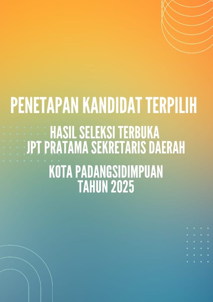 BeritaPengumuman 2 months ago1 month ago PENETAPAN KANDIDAT TERPILIH HASIL SELEKSI TERBUKA JABATAN PIMPINAN TINGGI PRATAМА SEKRETARIS DAERAH KOTA PADANGSIDIMPUAN TAHUN 2025