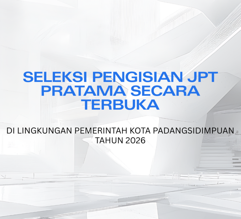 BeritaPengumuman 3 weeks ago3 weeks ago SELEKSI PENGISIAN JABATAN PIMPINAN TINGGI PRATAMA SECARA TERBUKA DI LINGKUNGAN PEMERINTAH KOTA PADANGSIDIMPUAN TAHUN 2026