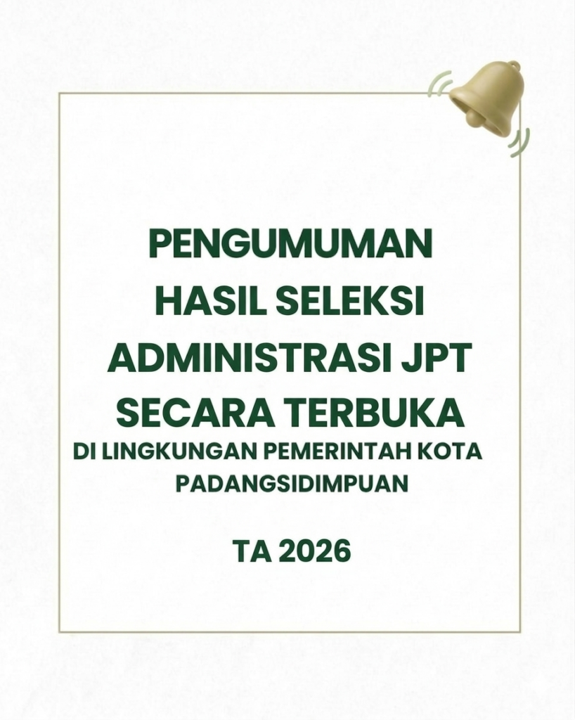 Umum 1 week ago1 week ago Hasil Seleksi Administrasi JPT secara terbuka di lingkungan pemerintah kota Padangsidimpuan TA 2026