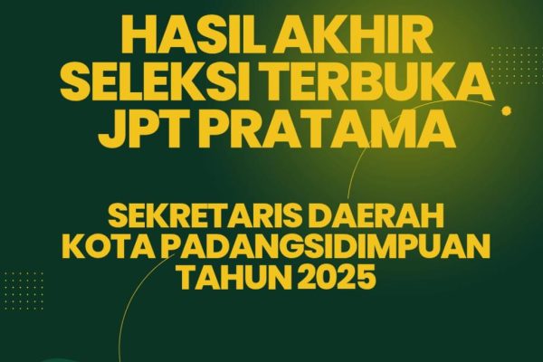 BeritaPengumumanUmumUnduh Hasil Akhir Seleksi Terbuka JPT Pratama Sekretaris Daerah Kota Padangsidimpuan TA 2025 admin3 weeks ago3 weeks ago01 mins Read More